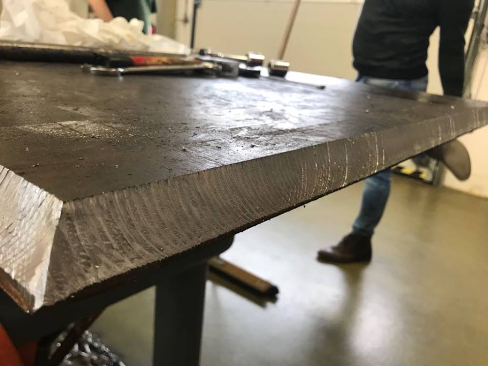 Stroj je samozřejmě vybaven automatickým posuvem a lze jej použít jako stacionární stroj určený pro velké série menších a malých obrobků. Současně může být použitý jako mobilní úkosovací systém, kdy stroj pojíždí podél obráběného plechu rychlostí téměř dva metry za minutu.
